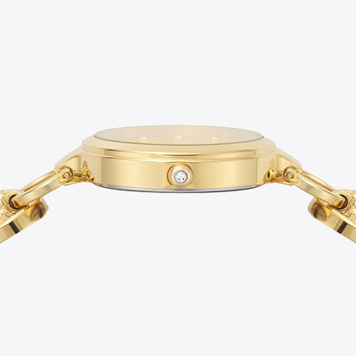 经典雅致的金色表盘,加上精致纹理的设计,彰显优雅复古气息。造型感十足的精钢表壳,线型流畅,贴腕更舒适。