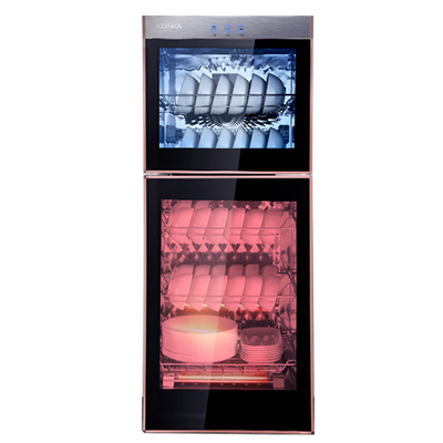 优质钢化玻璃面板,耐温性出色,高温下不易爆裂更安全。运用中温烘干技术,带走餐具上的水渍,干爽存放不易发霉。