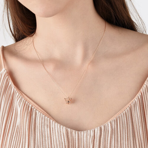 蓝宝石桂冠造型,诠释出时尚华美质感,显衬出都市女性自信个性。搭配圆珠车花镶嵌工艺,提升造型美感,演绎复古欧式风。