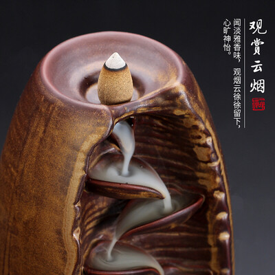 此款香炉采用左右叶片交错设计,一起一伏让意境趣味尽在眼前。采用窑变釉工艺,颇具古韵之气。