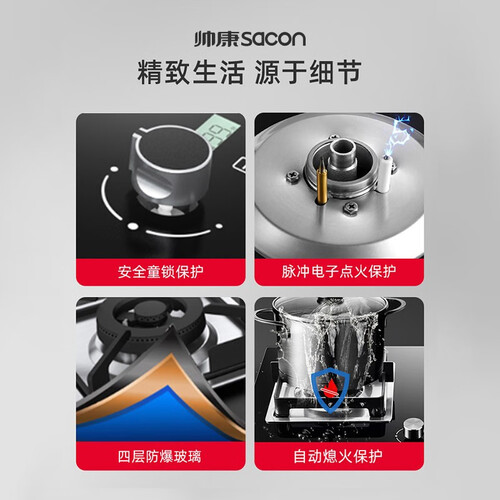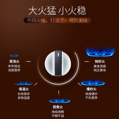 采用脉冲点火设计,有效减少燃气浪费,按压旋钮设计,防止儿童误操作。五通道多维供气,受热更均匀,轻松提高热效率。