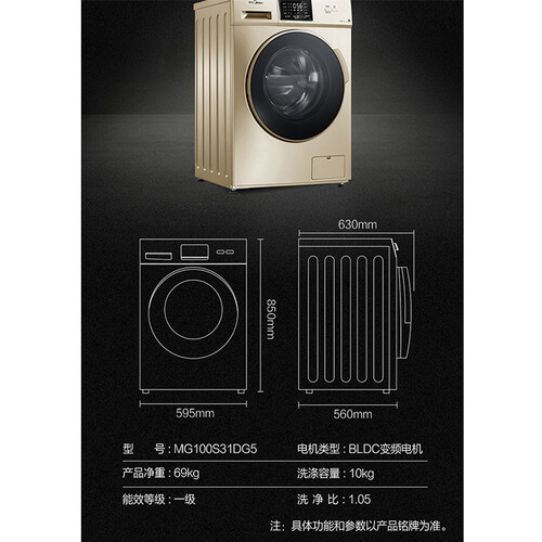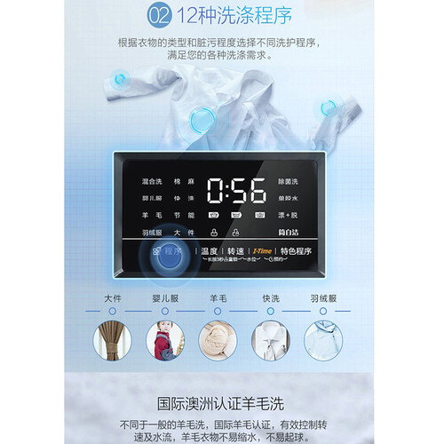 抗菌门封条设计,能有效抑制霉菌的滋生,确保清新的洗涤环境,防止衣物二次污染。10公斤大容量,一次搞定衣物,无需分批洗。