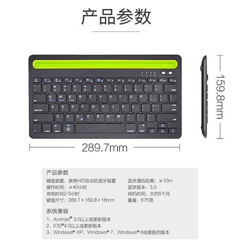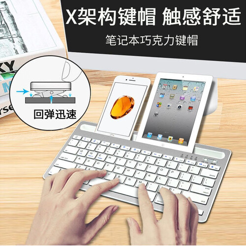 采用静音按键,敲击静音无扰,使用更舒适。支持蓝牙连接技术,使用免受线缆束缚,更加自在。