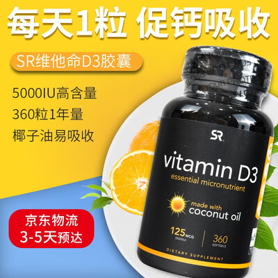 每粒添加5000IU维生素D3,含量高,每天一粒即可满足所需。其中添加椰子油,可以促进钙吸收。
