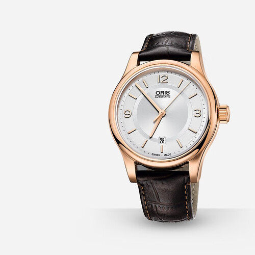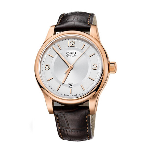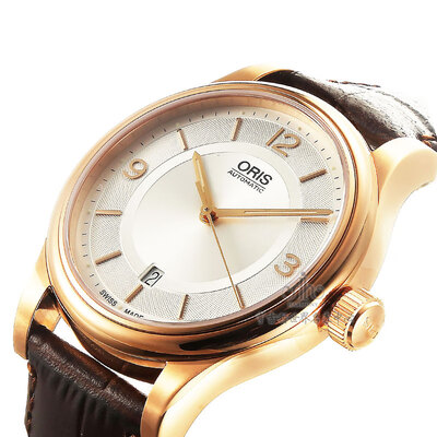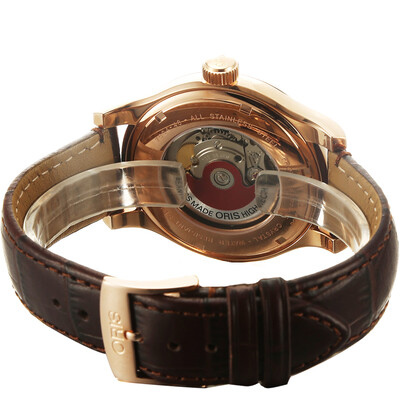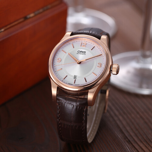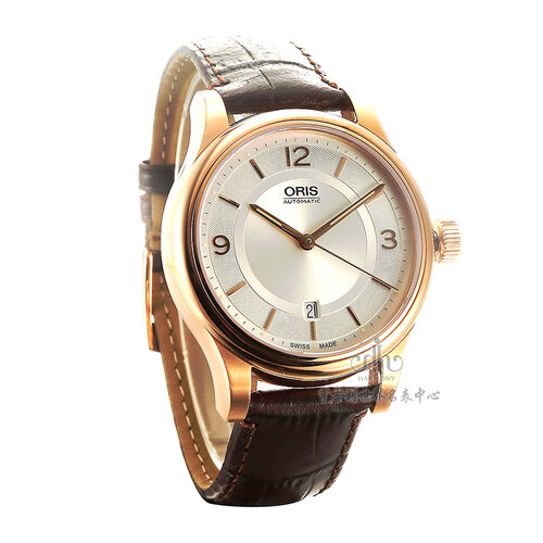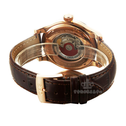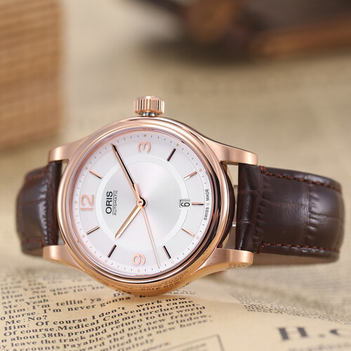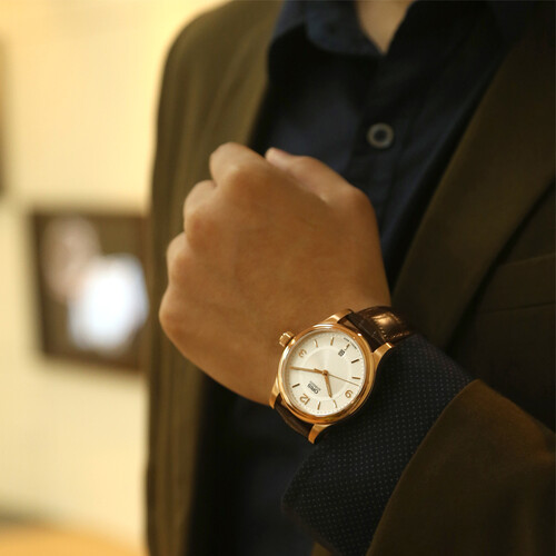 玫瑰金色的圆形表圈看起来很优雅,能够展现出低调奢华的感觉。该款手表采用皮革表带,简单的针扣闭合会更加方便。