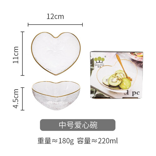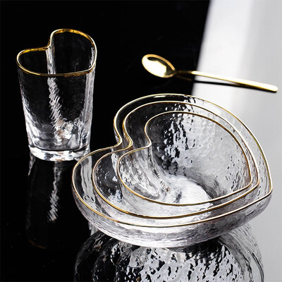 摩登主妇金边锤纹爱心玻璃沙拉碗