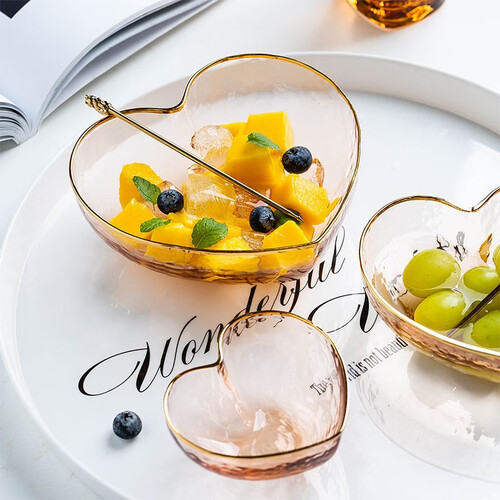 独特纹理具有较强的肌理感,晶莹剔透,仿佛阳光下的波光;爱心造型富有少女心,用来装水果和沙拉都更为别致浪漫。