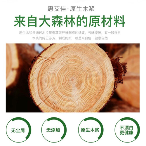 此款无芯卷纸有一股来自木头的纯正芬芳,气味淡雅,更加健康自然。选用原生木浆制造,母婴也可以使用。