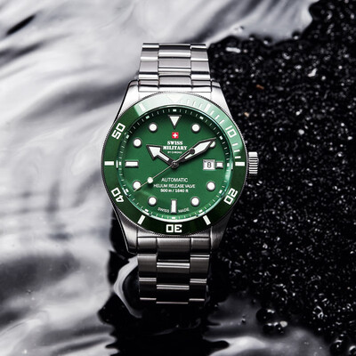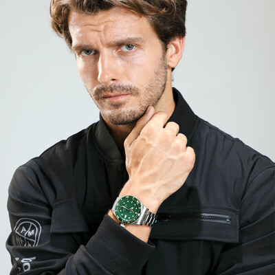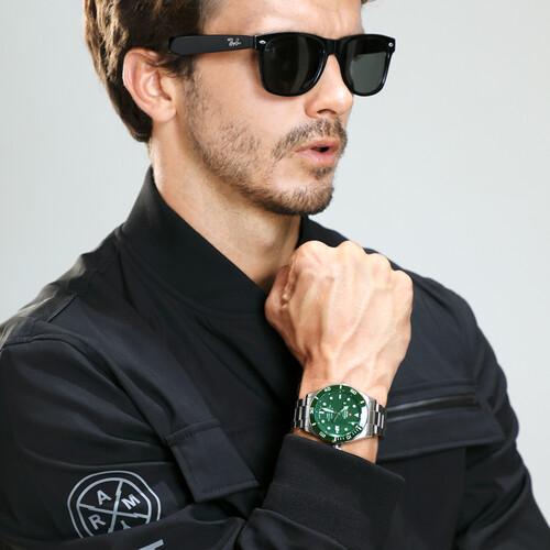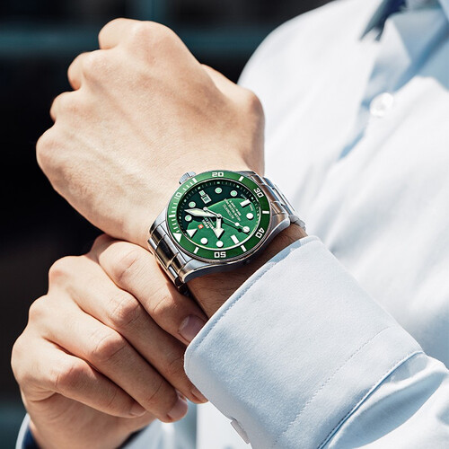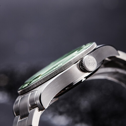 表身具有500米防水功能,十分适合潜水时佩戴。采用绿色表盘设计,时髦大气,吸睛感十足。