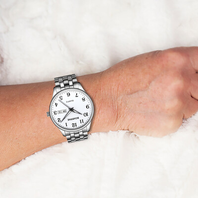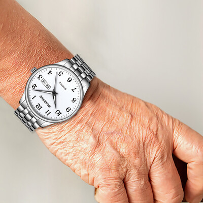 简约表盘设计,字体加大加粗,读时更清晰。表壳严选上乘精钢打造,经过多道工序打磨,轮廓细腻更有质感,久用如新。