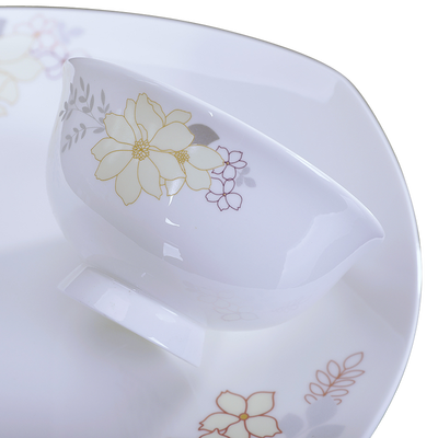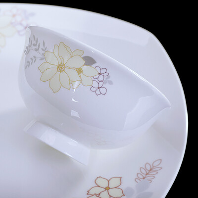 在陶瓷碗设计中融入花卉图案,清新雅致,提升格调。结合高脚设计,方便端取,不易烫手。