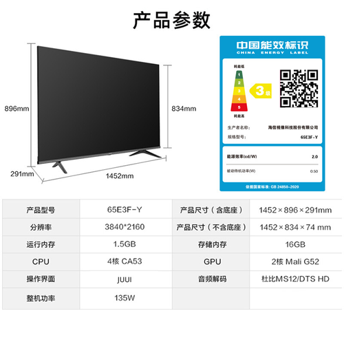 这款电视采用4K超高清屏幕,使画面更真实、自然。并采用一体成型机身,美观又坚固。