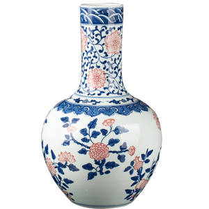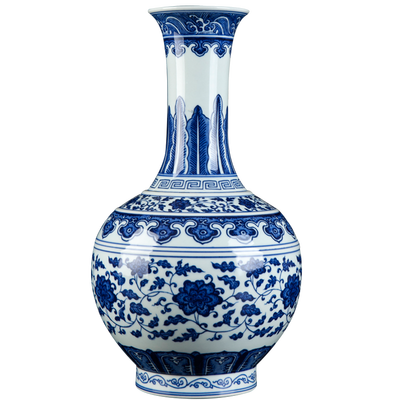 以质地良好的瓷土,经过高温烧制而成,瓷质细密光滑,配上青花缠枝莲纹饰,花叶缠绕点缀瓶身,具有中式古典韵味。