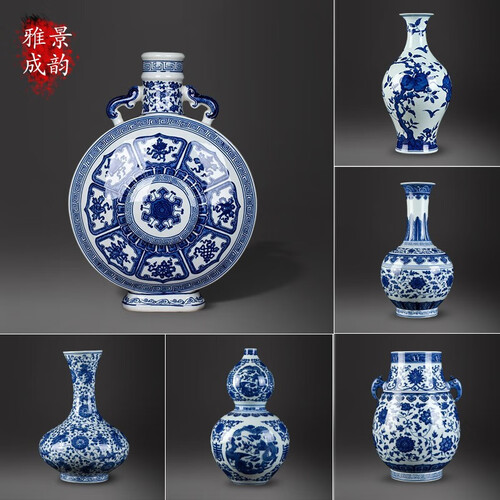 景韵雅成 青花陶瓷瓶 装饰摆件