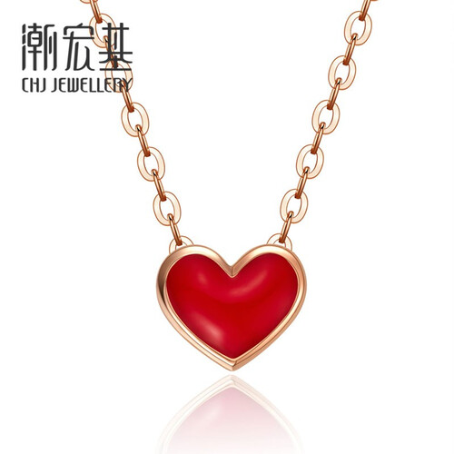 潮宏基 小红心玫瑰金项链