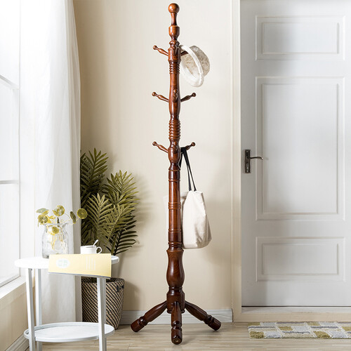 衣帽架采用出口水曲柳材质,天然环保放心使用,粗壮的主干承重力强,稳固结实,环保的喷漆处理光滑有质感,防潮耐脏。