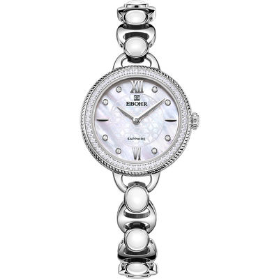拥有手链式表带,小巧又玲珑,可以诠释女性独有魅力。表盘融入百合纹母贝元素,随着阳光变化色泽,平添韵味。