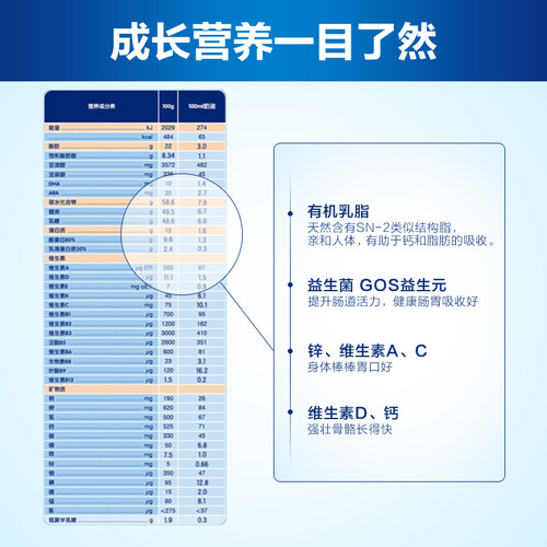 奶粉中含有SN-2成分,食用好吸收,可缓解宝宝情绪,还能增强体质,另外粉质细腻均匀,冲泡时更易溶解。