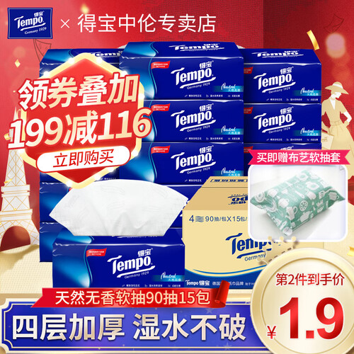 严选进口原生木浆,四层加厚设计,柔韧厚实不分层,湿水依然强韧,不掉纸屑不分层,包装简约时尚,放置美观大方,适合各种场景。