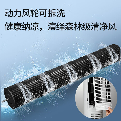 480m³/h的大风量,再结合空气动力学的原理,使得风感柔和细腻,带来舒适的体验;动力风轮还能拆卸,清洗便捷,不易积灰。