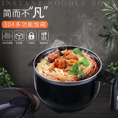 碗身拥有1200毫升强大容量,可以一次放入两包方便面,满足大胃口需求;盖子带有卡扣,卡紧严密牢固,不易脱落。