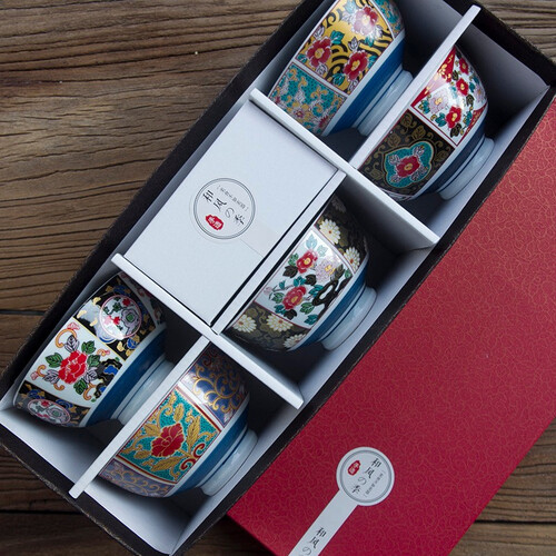 五彩斑斓的陶瓷碗,采用釉下彩及贴花工艺加工,精美别致。搭配古色古韵的包装礼盒,简洁大气,送礼更体面。