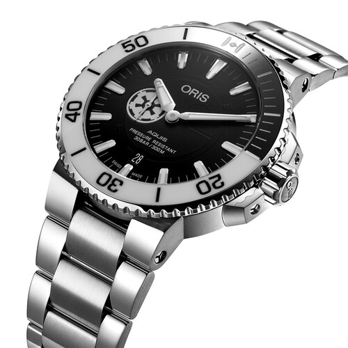 与《星球大战》合作的限量版腕表,0刻度以TIE战斗机图形为标识,小秒盘则以帝国国徽为灵感元素,彰显联名腔调。