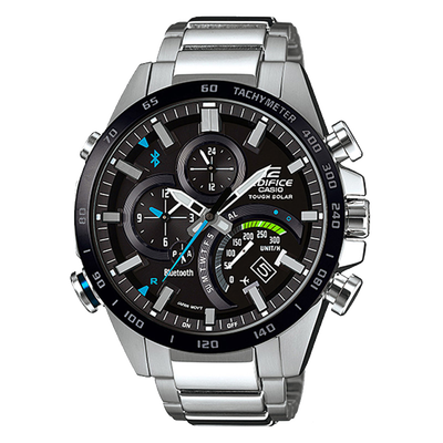 手表通过蓝牙连接手机,从而获取时间信息,并且利用的是太阳能动力,只要有光的地方就可以自动充电,所以就无需频繁更换电池了。