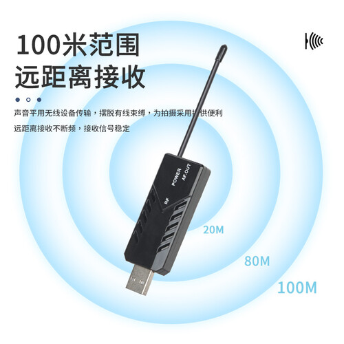 全金属材质打造机身,耐磨耐久用。100米距离内接收稳定,即插即用。迷你轻巧的机身,佩戴舒适无负重感。