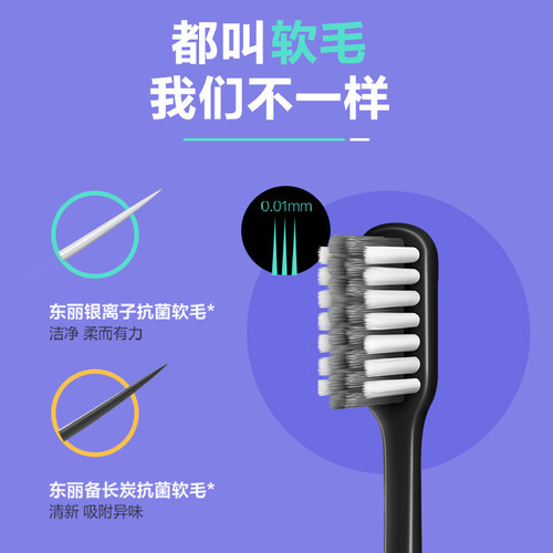 三明治式的刷毛布局,长短不一,符合牙齿排列,深层清洁牙龈沟。圆润的弧形刷头,入口没有撑胀感,刷牙更舒适。