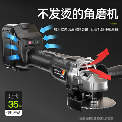 角磨机使用全铜线绕柱的无刷电机,动力强劲,可以耐受高温,持续作业也不易烧机。并采用进口索尼电芯,损耗低,使用更长久。