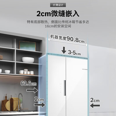 502升大容量,满足家庭日常囤货需求。纤薄嵌入式设计,轻松融入多种厨房装修风格。风冷无霜,日常打理更省心。变频节能,安心享用新鲜。