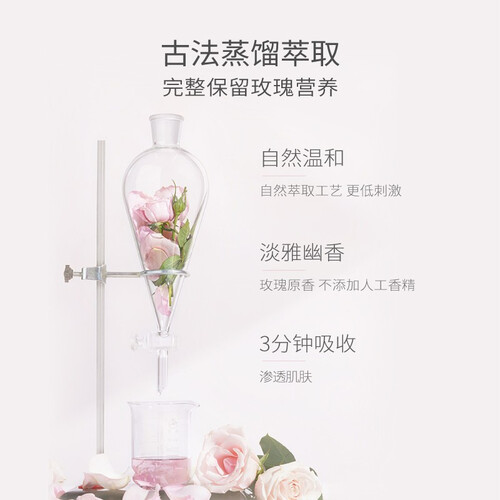 古法萃取的玫瑰精华,养分充足,配方更温和天然,上脸滋润不油腻,不紧绷,而且还有淡淡的玫瑰芬芳。