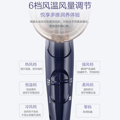 1700W强大功率加持,快速吹干发丝的水分,并通过矿物质负离子让发丝莹润光亮。炫动风嘴设计,能够自然摆动,无需反复移动。