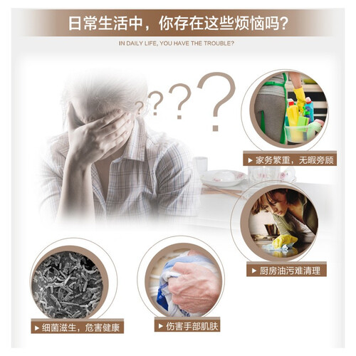 选用吸油布面,搭配立体凸纹的刮油结构,顽固的重油污也能轻松清洁。配方中蕴含苹果酸成分,去污能力优越,并且呵护手部肌肤。