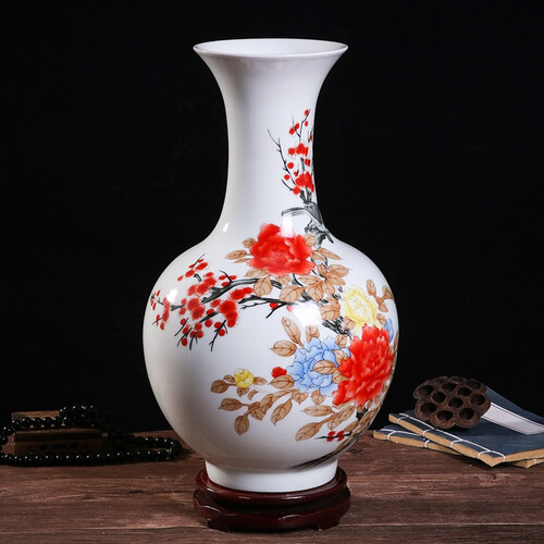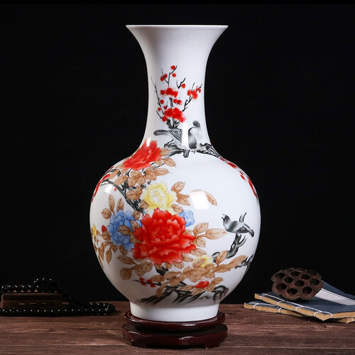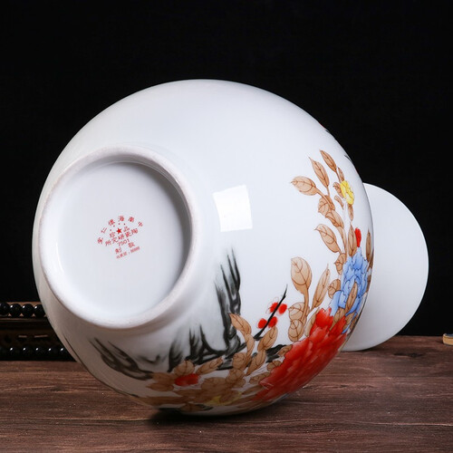 来自景德镇的它为高温烧制而成,瓶身以鲜艳的色彩描绘了怒放的牡丹,拥有“富贵”的美好寓意,适合摆放在客厅。