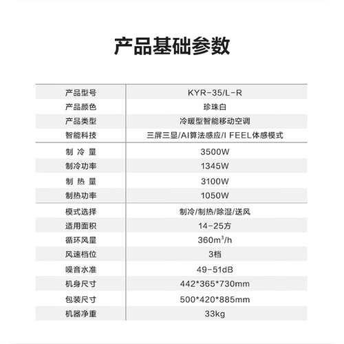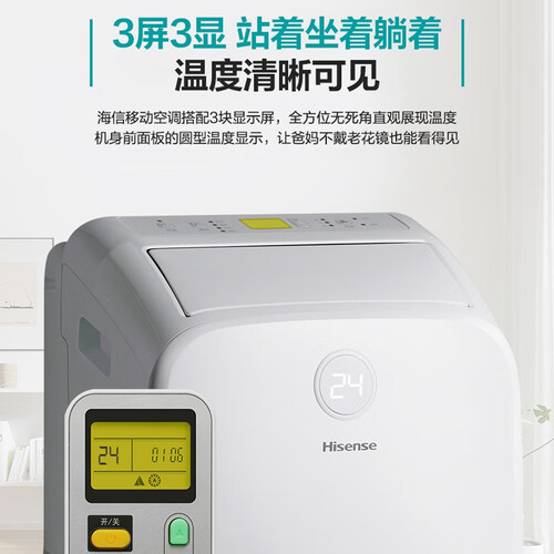 机身前拥有圆形温度显示屏,远距离观看也方便。采用转子压缩机,运行时动力强劲,性能更加稳定。