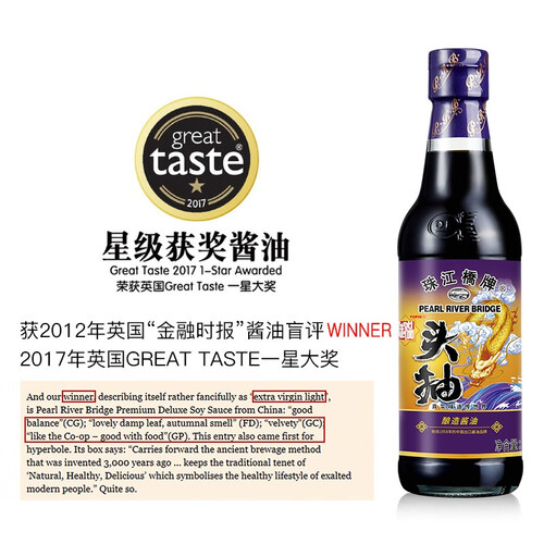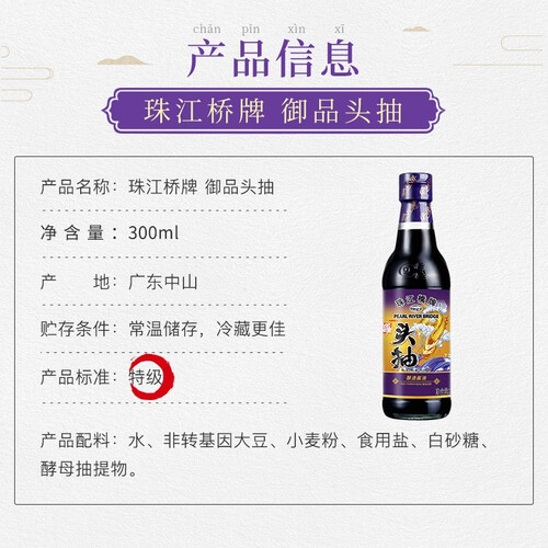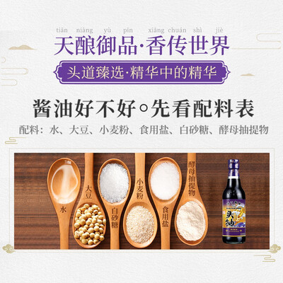 头道酿造的特级酱油,还原原汁原味,提鲜能力更好。制作过程中不添加化学成分,严格把控品质,可放心入口。