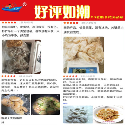 选取人工挑选的方式,个头匀称,每一只的品质都很优良,晶莹剔透。经过烹饪,肉质更加紧实饱满。