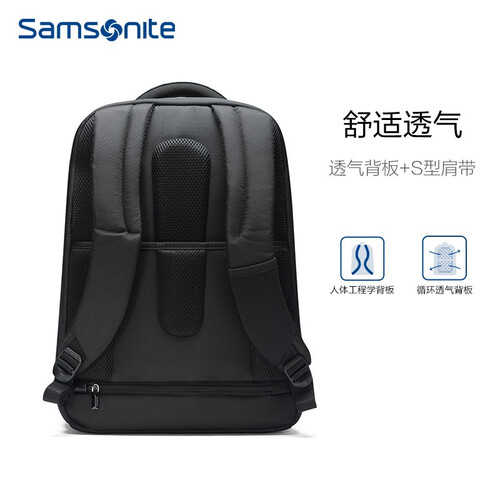 这款新秀丽双肩包,采用三层收纳设计,三层空间物品再多也可以尽然有序的全部带走,人体工学透气背板帮助散热,带来轻松舒适感。