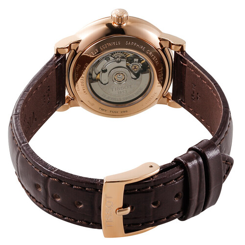 深邃的真皮表带,搭配玫瑰金色表壳,体现出典雅的欧式迷情,内置自动机械机芯,让分秒尽在掌控,商休通勤。