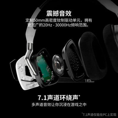 定制50mm高密度钕制驱动单元,拥有更宽广的20Hz-30000Hz频响范围,音效震撼。7.1环绕声,沉浸感强。