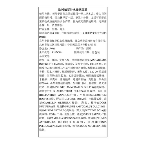 欧树 植萃补水睡眠面膜