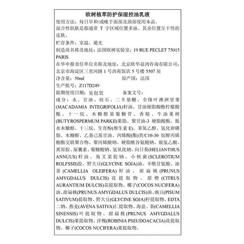 欧树 防护保湿去油乳液