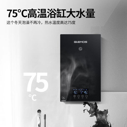 75℃高温浴缸大水量,尽情洗浴,缓解身心疲劳。智能安保防电系统,实时故障自检,保障家人洗浴安全。