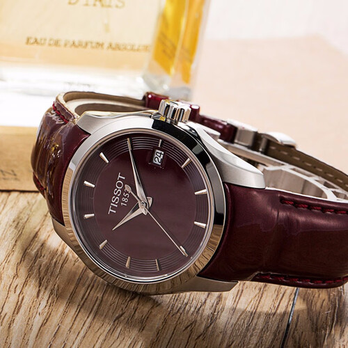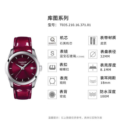 经典柳叶指针,准确指示方便读数。蓝宝石玻璃表镜,硬度高抗刮耐磨,高透光耐腐蚀。T字外侧刻印,彰显品牌格调。