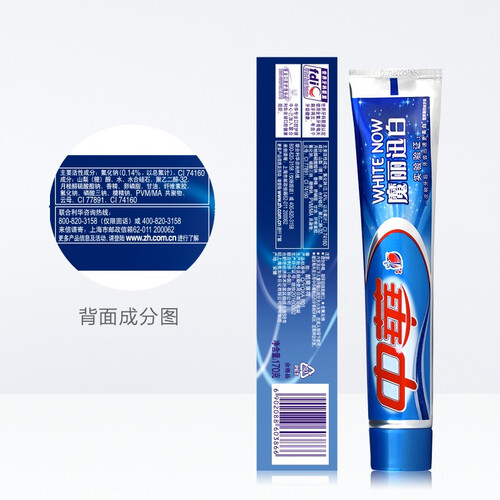 特含牙医用于洗牙的珍珠岩成分,4周美白牙齿。采用含氟配方,防蛀固齿。