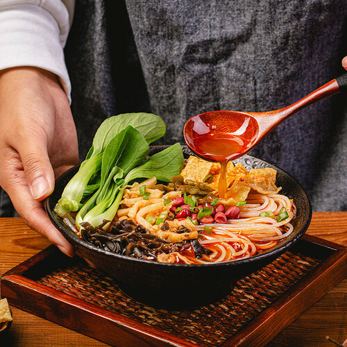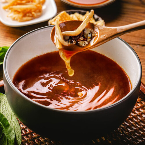 选用螺蛳加多种辛香料熬制,味道麻辣香醇,勾起您的食欲。内含酸笋包,精心腌制而成,入口嘎嘣脆响。