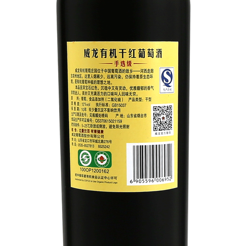 瓶身印刷有防伪码,一瓶一码可查询生产信息,饮用更安心。采用牛皮纸包裹瓶身设计,避免因光照影响红酒口感。