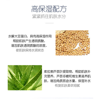 含有玻尿酸成分,让肌肤更加紧致有光泽,更显年轻。采用滋润锁水配方研制,让肌肤水嫩Q弹,不再干瘪暗沉。